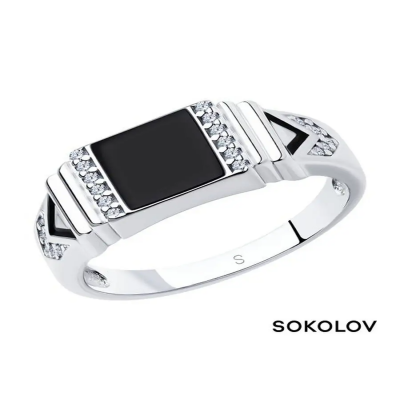 SOKOLOV Кольцо (печатка) из серебра с фианитами и эмалью