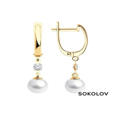 покрытие > Одежда и аксессуары > Серьги из золота с жемчугом и фианитами 585 пробы