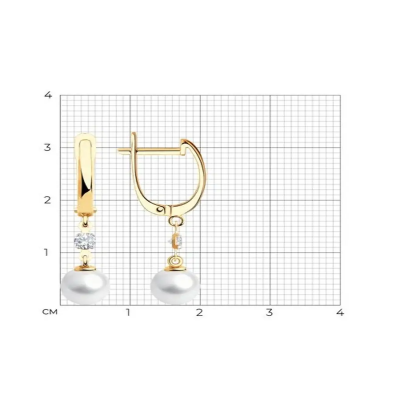 Серьги из золота с жемчугом и фианитами 585 пробы
